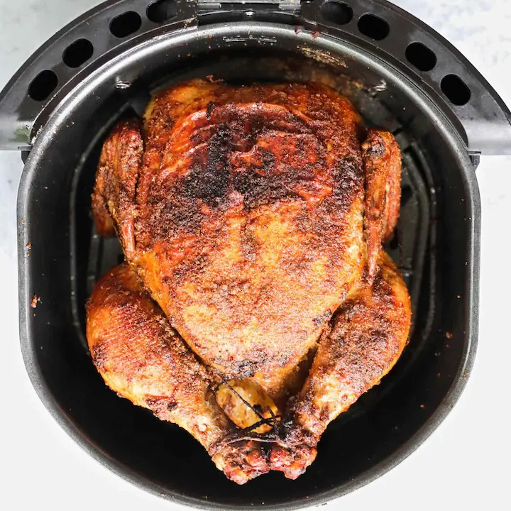 One thing to consider is the size of the chicken. Depending on the type of air fryer you own, you should use a whole chicken that is about 3 lbs in size.