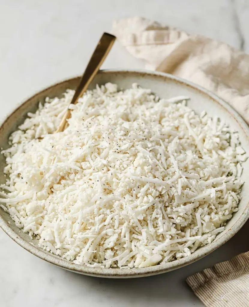 Stand over a sink and twist the towel, squeezing gently to remove liquid. Press and twist until no more water drips out. This step ensures crisp, fluffy cauliflower rice.
