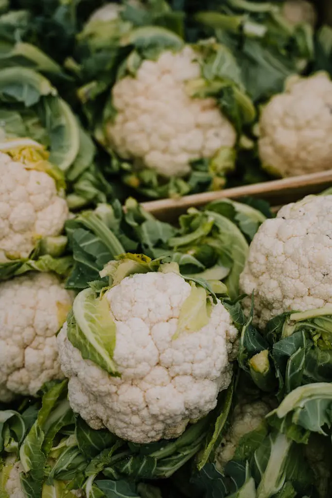 - Cauliflower: Weight and firmness indicate a quality cauliflower. Look for bright white colors and avoid any sections with brown marks or soft spots.