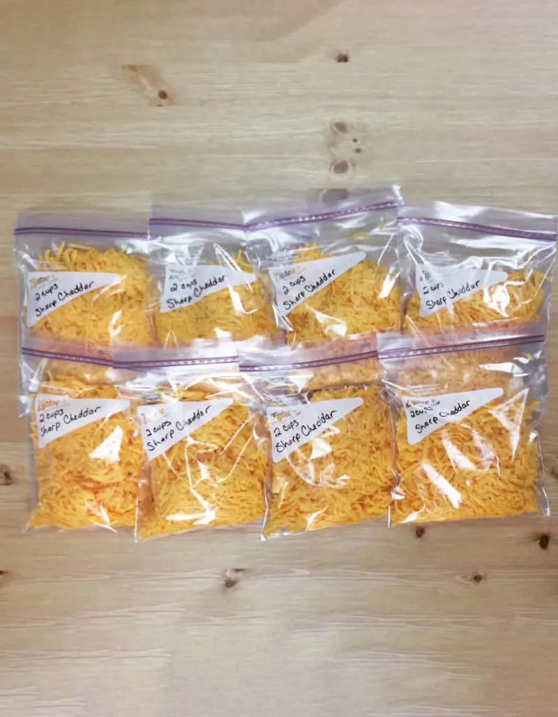 Write the type of cheese, the amount, and the date on each bag. After all, all frozen grated cheese looks pretty much the same after a while, so you want to avoid any confusion later!