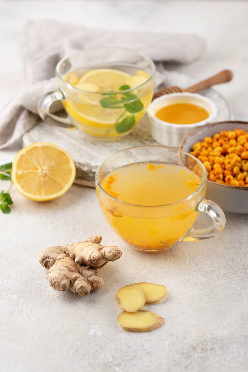 - Lemon: The sour taste of lemon juice elevates the taste of ginger tea as it helps neutralize the strong but warm spiciness of ginger.