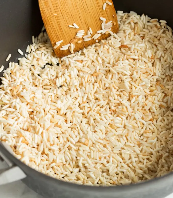 - Toast the rice before cooking to enhance its nutty flavor and prevent clumping. Toasting also makes the rice porous which helps in absorbing more flavor.