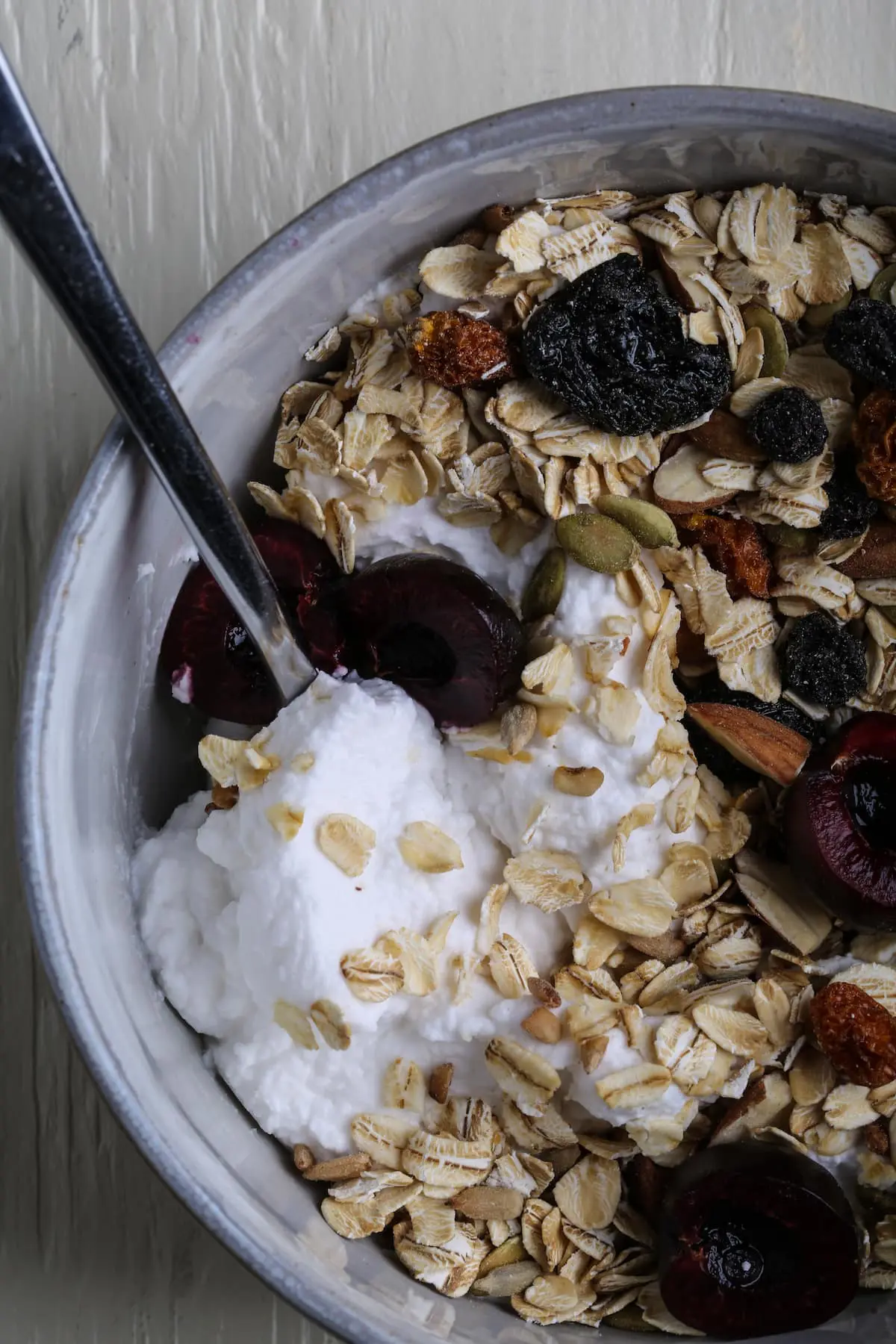 Mix muesli with yogurt for a creamy and protein-rich breakfast.