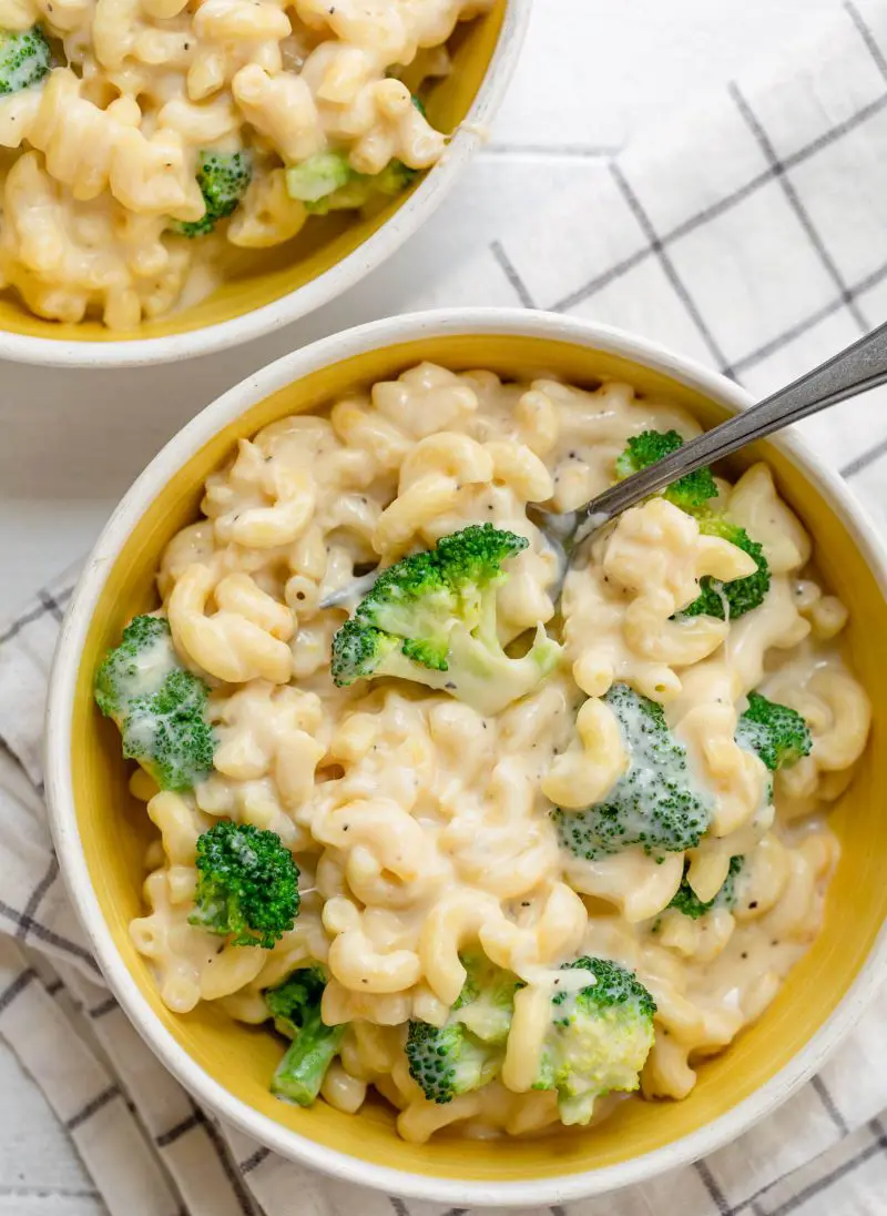 - Steamed Broccoli: Want to feel a bit healthier? Steamed broccoli florets mixed in not only add color but make it more nutritious. The cheese sauce coats the broccoli perfectly - even veggie skeptics might approve!