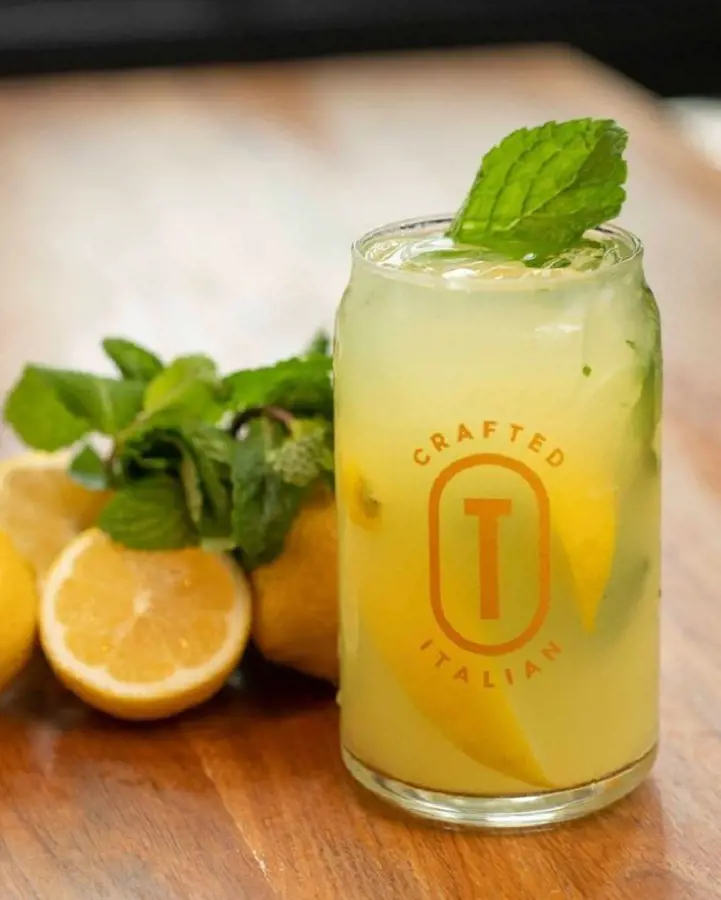 Using a shot glass, pour a shot of limoncello, two shots of lemon soda, and prosecco in the desired amount and pour it into the serving glass. Add 1-2 ice cubes and serve with lemon and mint garnish. The lemon soda should be tart, sweet and sparkling for best results.