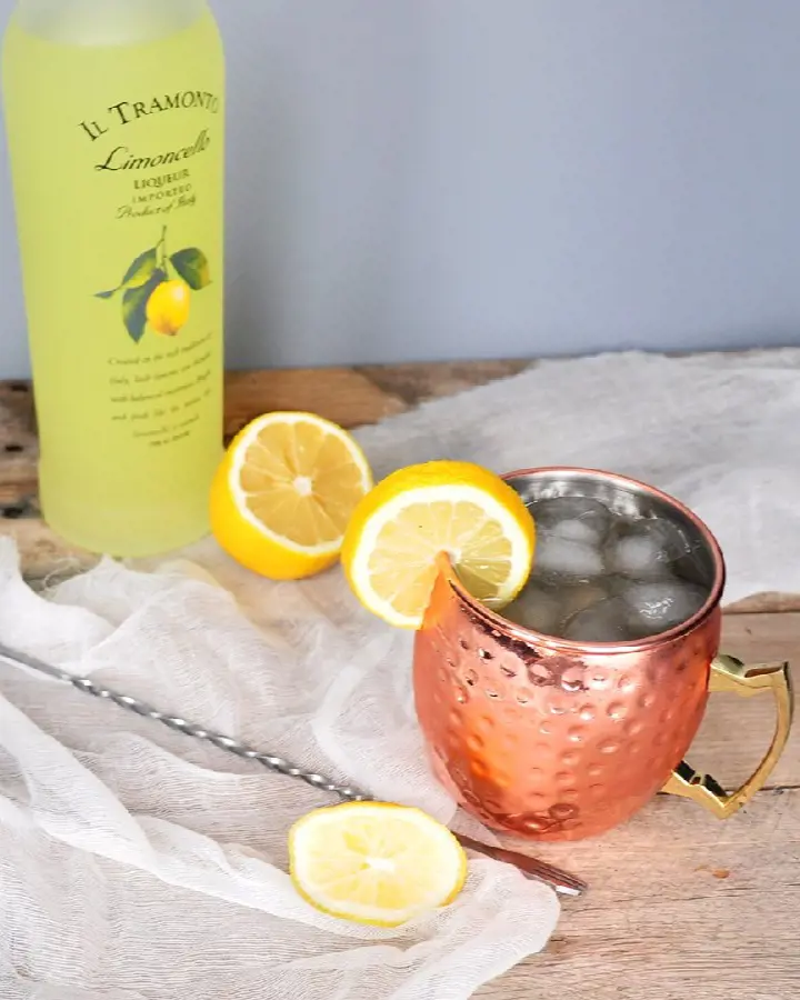 Add 3 oz limoncello, 3 oz good quality vodka, 1 oz lemon juice, 4 oz ginger beer, and plenty of ice in a cocktail shaker, and shake well. Serve in a copper mug like the traditional way to keep the drink cold.