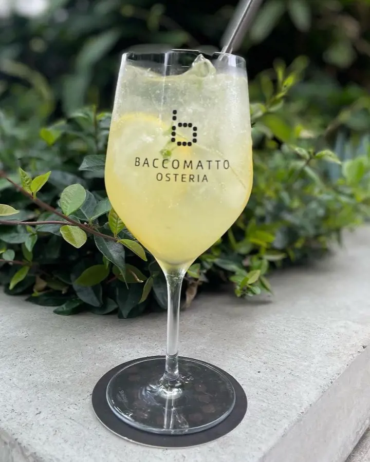 Combine 1.5 oz limoncello, one tablespoon overproof liquor, two dashes of orange bitters, and top with club soda in a highball glass over ice. Garnish with a lemon wheel and cocktail cherry.