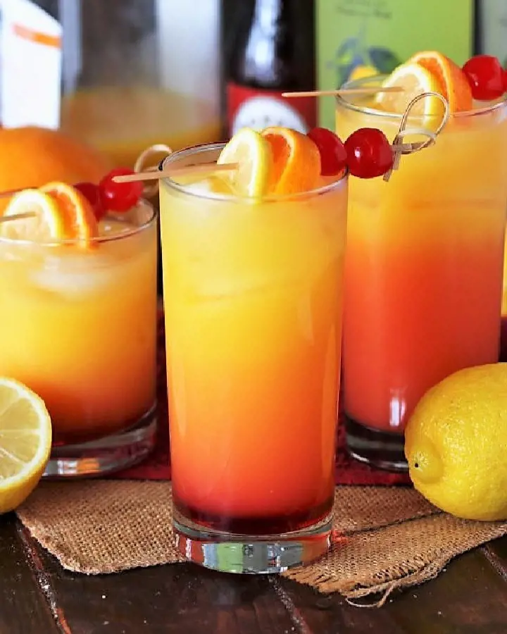 Layered with red, orange, and yellow hues to mimic the appearance of a sunrise, a limoncello sunrise is one of those visually enticing drinks that is as delicious as it is beautiful. In this variation, the limoncello replaces the tequila.
