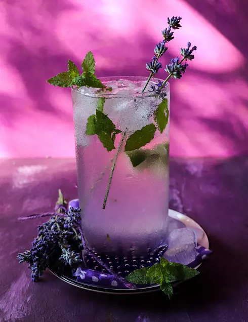 The Lavender Honey Mojito brings a fancy touch to the classic Mojito. Lavender gives it a flowery and calm smell, making the drink feel more special and relaxing. The honey adds a smooth and sweet taste that balances the tartness of the lime.