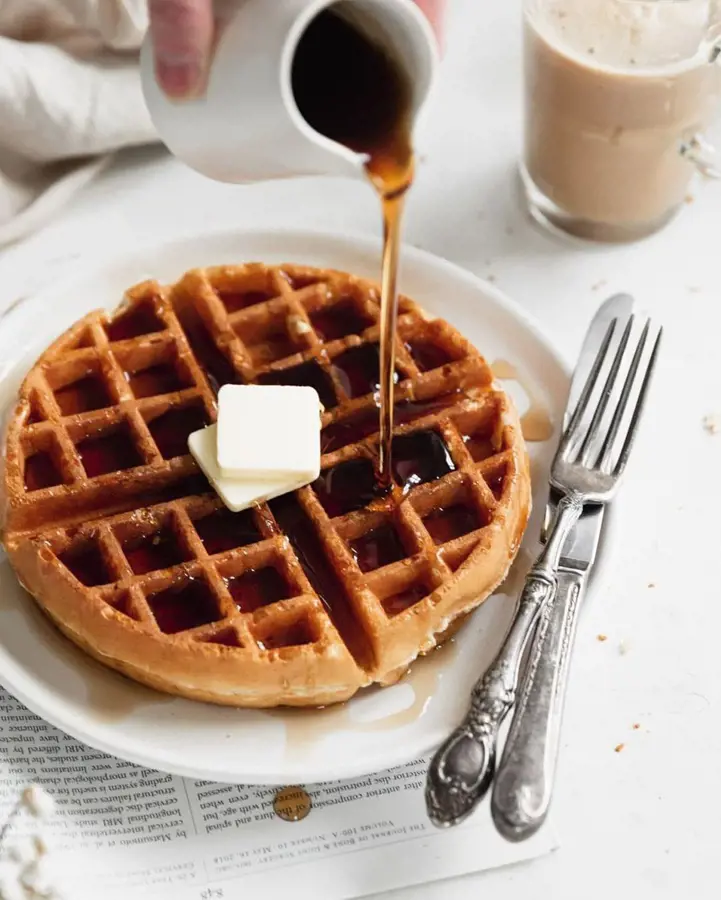 A simple pancake/waffle needs a mixture of flour, sugar, salt, milk and butter. You can also add eggs to your pancake to make it more nutritious. Garnish with any syrup and serve. Try these popular pancake recipes for breakfast.