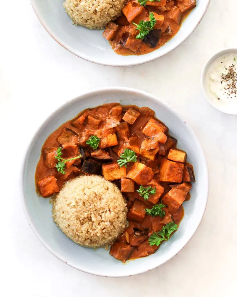 Enhanced with a harmonious blend of spices and herbs, this curry is a wholesome dish that effortlessly caters to both tofu enthusiasts and lovers of robust, plant-based flavors. Serve it over rice or with warm, crusty bread to complete this culinary experience.