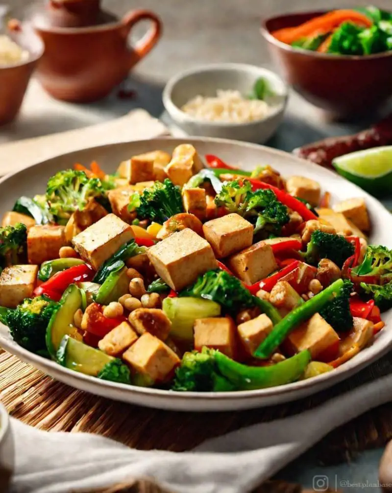 Indulge in a delightful culinary experience with Tofu and Vegetable Stir-Fry. This vibrant dish combines the silky texture of tofu with a medley of fresh, colorful vegetables, creating a harmonious blend of flavors and textures.