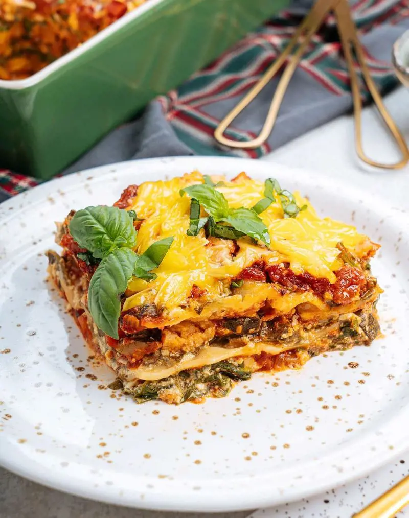 In this vegan twist on classic lasagna, velvety tofu takes the place of ricotta, creating a rich and satisfying alternative. Combined with a bechamel-inspired white sauce, this plant-based rendition ensures an indulgent dinner that doesn't leave you feeling deprived.