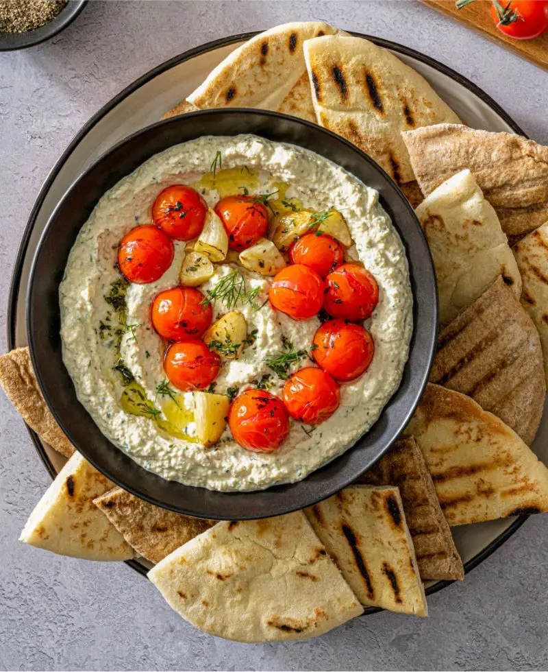 Whipped Feta Tofu Dip introduces a luxurious union of whipped feta's creamy richness and the silky smoothness of tofu. This savory dip delights the palate with a harmonious blend of flavors, featuring the tangy nuances of feta and the subtle nuttiness of tofu. Ideal for dipping crisp vegetables or spreading on crackers, this versatile and satisfying appetizer adds a unique twist to traditional dips.