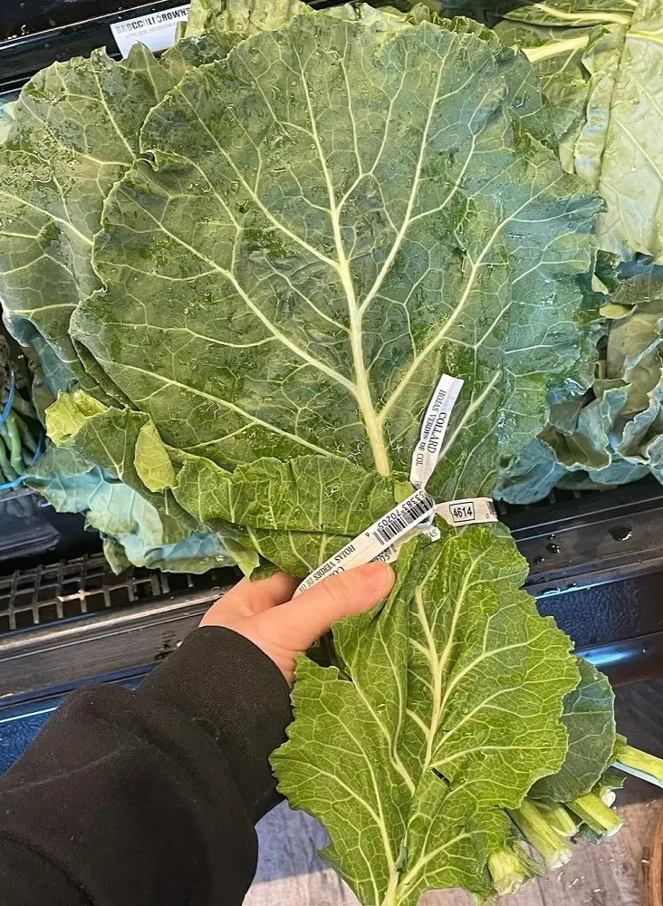 They also have a tough stem and center rib that is usually removed before eating. If you want to make a salad or smoothie with collard greens, it is better to mix the leaves in with lots of milder greens, like spinach. They are easier to enjoy that way.