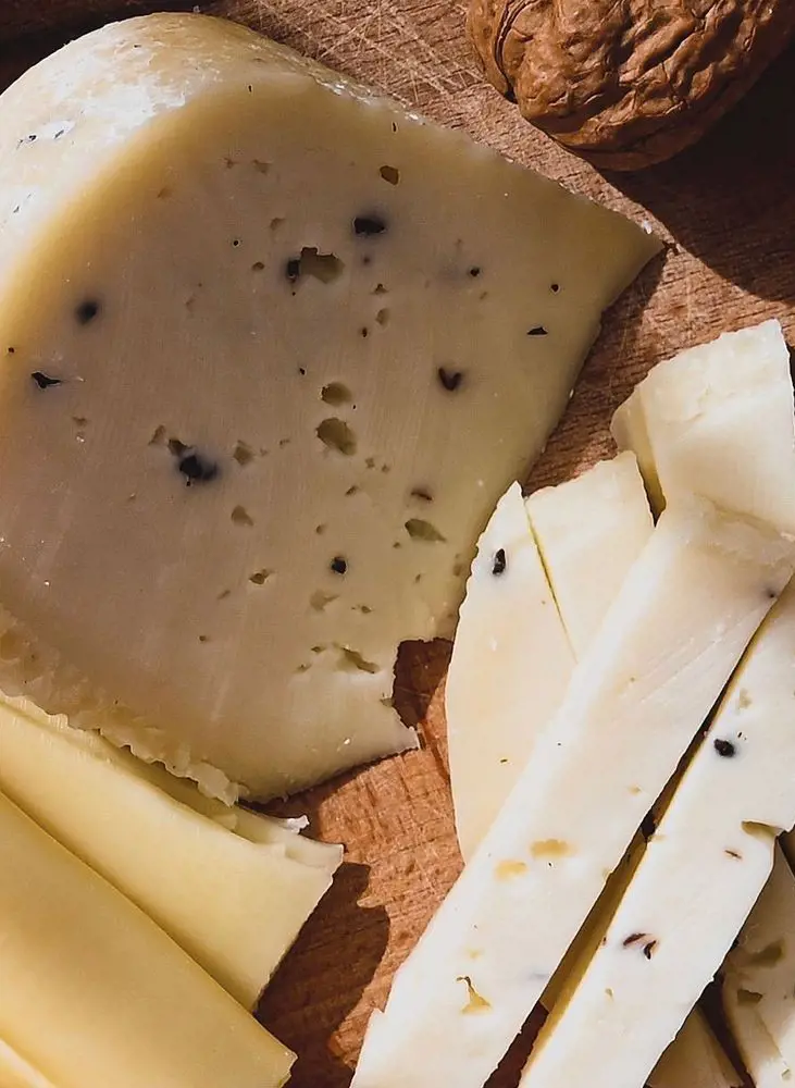 As the name suggests, hard cheese is firm due to its lack of moisture. The cheese is cooked at high temperatures to remove the whey before the curd is soaked in brine and left to mature. It is savory with distinct, concentrated flavors. Some types of cheese that are hard include parmesan, cheddar, gouda, asiago, pecorino romano, and gruyère.