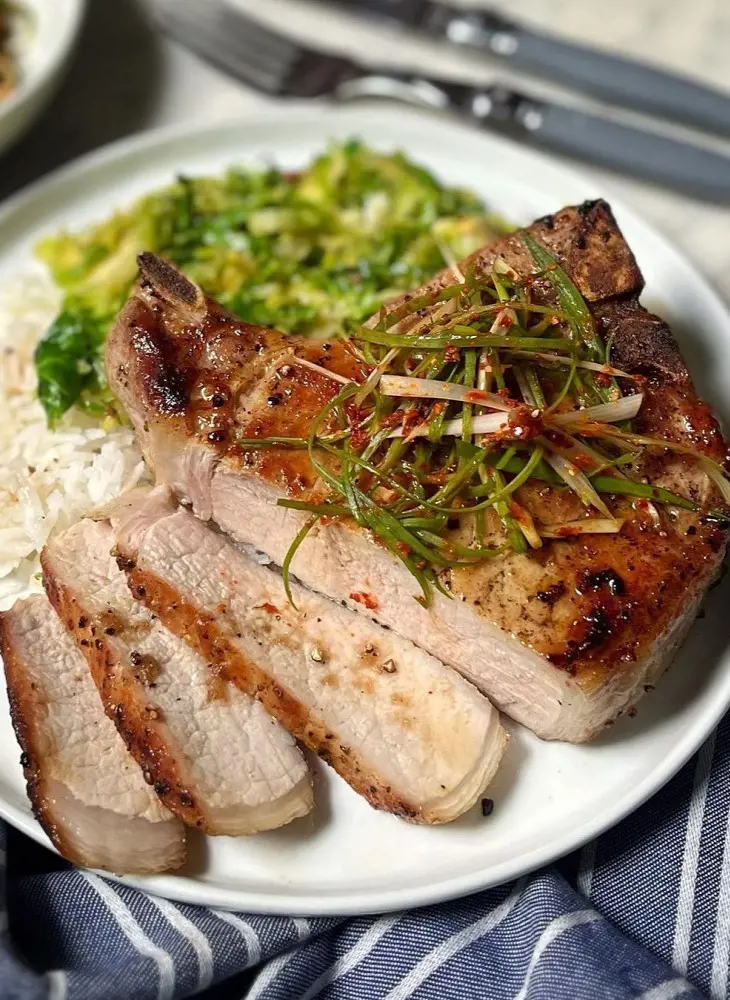 Pork chops come from the loin of a pig and are the most popular cut of pork. They can be pan-seared, grilled, baked, or braised. A 100-gram pork chop has 69 mcg of vitamin K, which is more than half the daily recommended value.