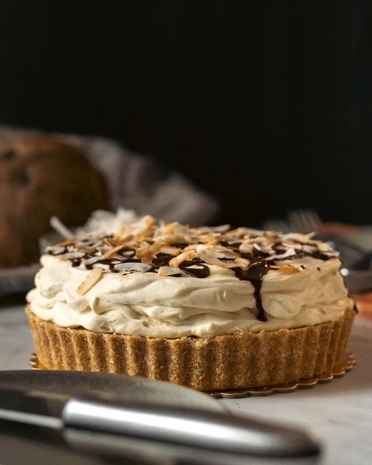 Banoffee Pie is a delicious dessert that is made of graham cracker crust filled with whipped cream, toffee, and banana. Sweetened condensed milk is boiled down until it thickens and turns caramel-like. The graham cracker crust is then layered with the rich caramel sauce, which tastes sweet and buttery.
