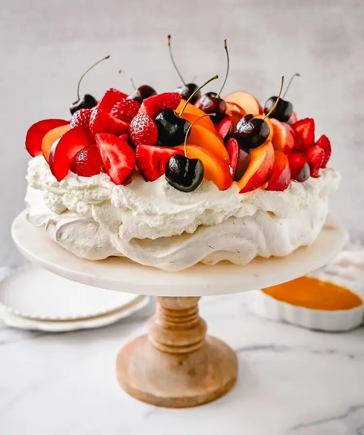 A delicious meringue-based delicacy that blends flavors of fresh fruit, creaminess, and crispness is called pavlova. To make a glossy meringue mixture, start by beating egg whites and sugar until stiff peaks form. The result of baking this mixture is a light, crisp meringue shell with a soft, marshmallow-like center.