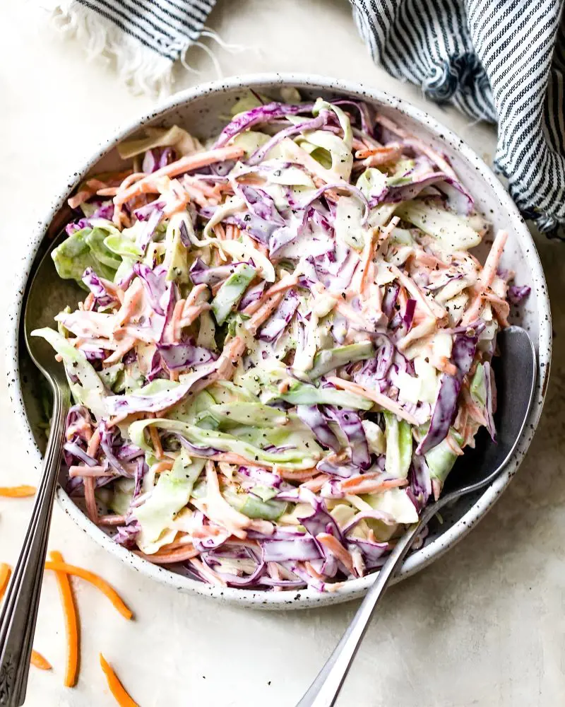 Indulge in the perfect pairing of succulent pork chops and this iconic coleslaw, creating a symphony of tastes that will leave your palate satisfied and craving more.