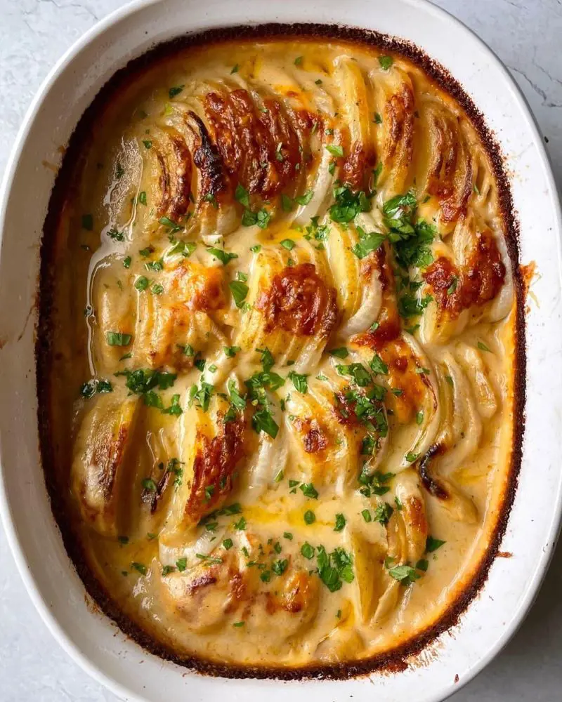 Potatoes au Gratin, with its velvety texture, elevates any meal, seamlessly complementing everything from burgers and steak to the timeless classic of pork. Its versatility makes it a standout, appealing to a wide range of tastes.
