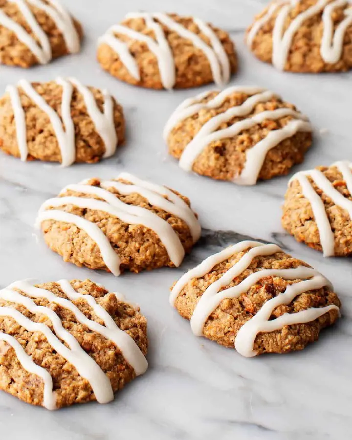 These cookies are hearty enough for brunch, afternoon snack, breakfast, and dessert. You need to combine grated carrots, flax egg, flour, rolled oats, baking powder, baking soda, cinnamon, nutmeg, almond butter, and sugar. Once combined, form cookie dough and bake it.