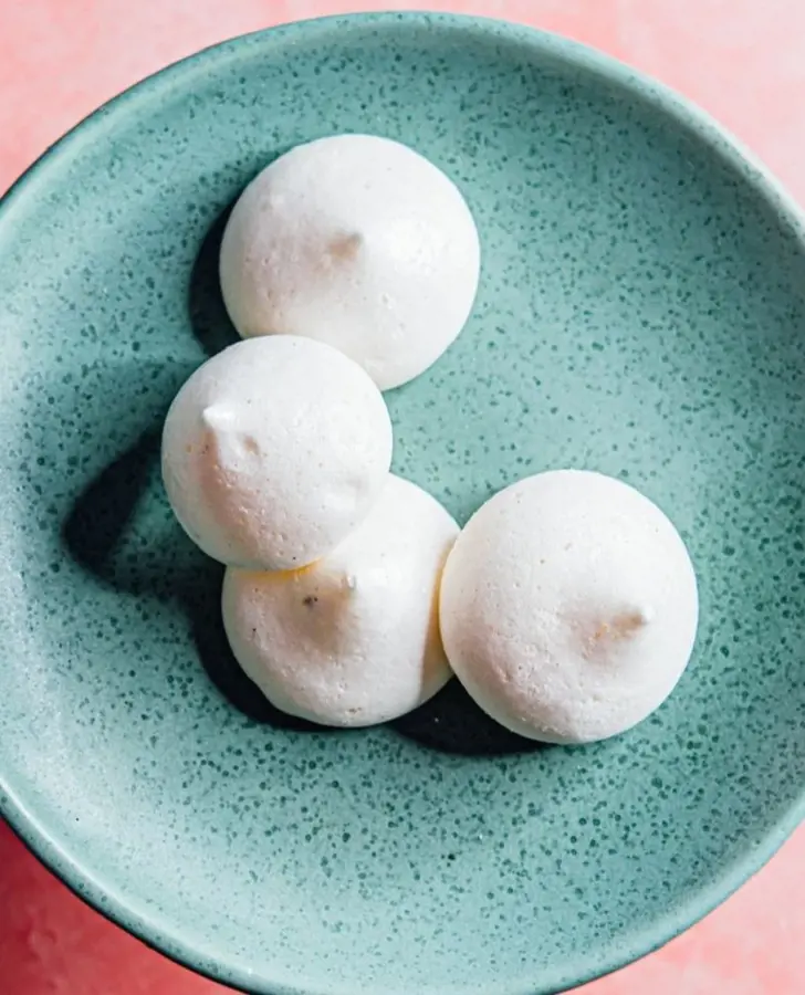 A traditional meringue is typically made from whipped egg whites and sugar, but for a vegan version, you can replace the eggs with aquafaba, the liquid from a can of chickpeas.