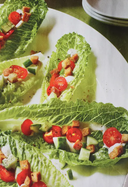 Caesar Salad Bites are bite-sized versions of the classic Caesar Salad. It starts with crisp and crunchy romaine lettuce leaves on top of which lie the other ingredients. The salad is often made with cucumbers, avocados, and some cabbage. You can garnish it with salty Parmesan cheese and some crunchy croutons.