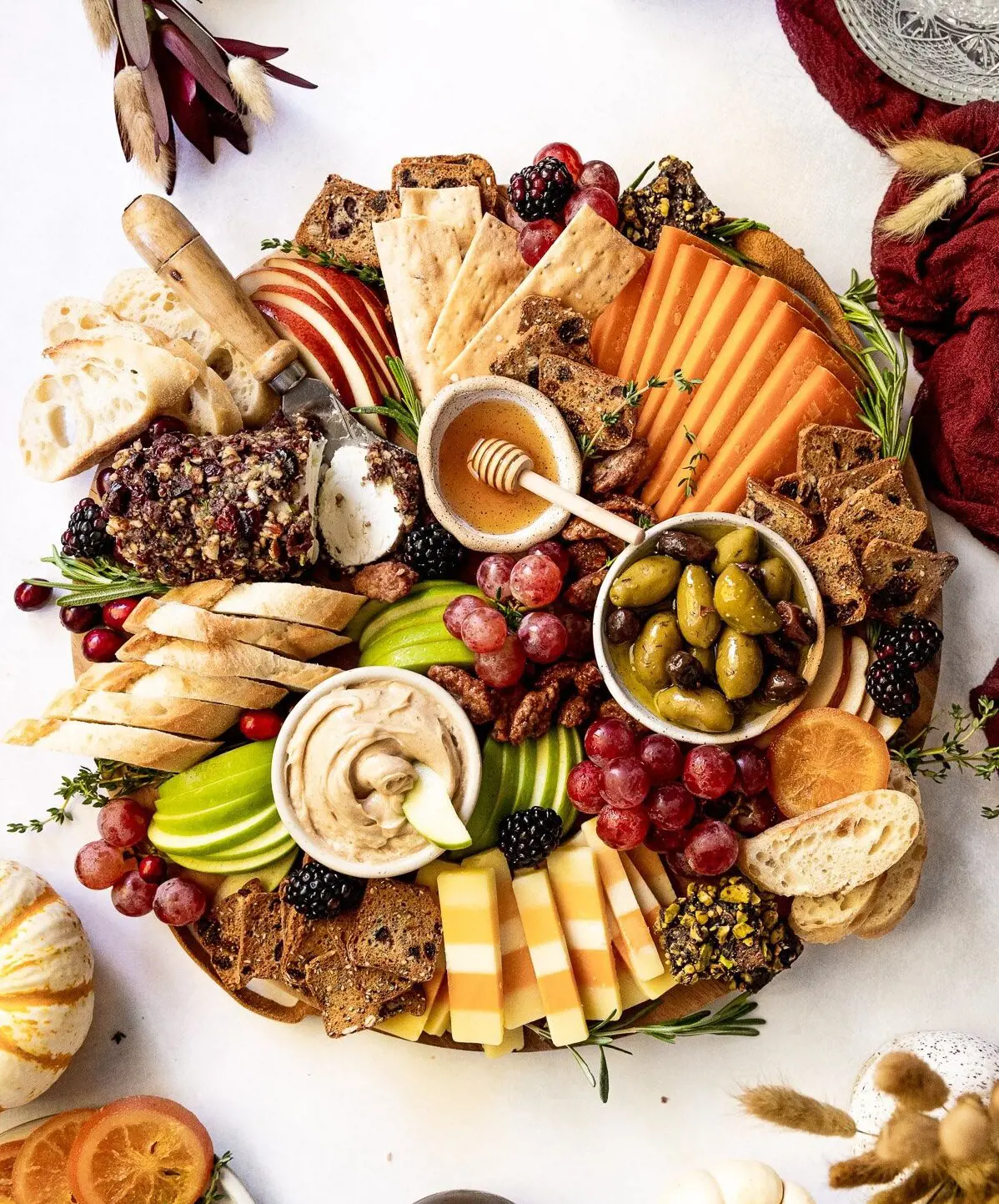 As a vegetarian version of the charcuterie board, the veggie platter features fresh produce that is healthy as well as tasty. Crunchy carrot sticks, vibrant bell pepper strips, crisp cucumber rounds, and cherry tomatoes form the backbone of this edible artwork. Radiant broccoli and cauliflower florets add a touch of earthiness, while snap peas contribute a sweet, snappy note.