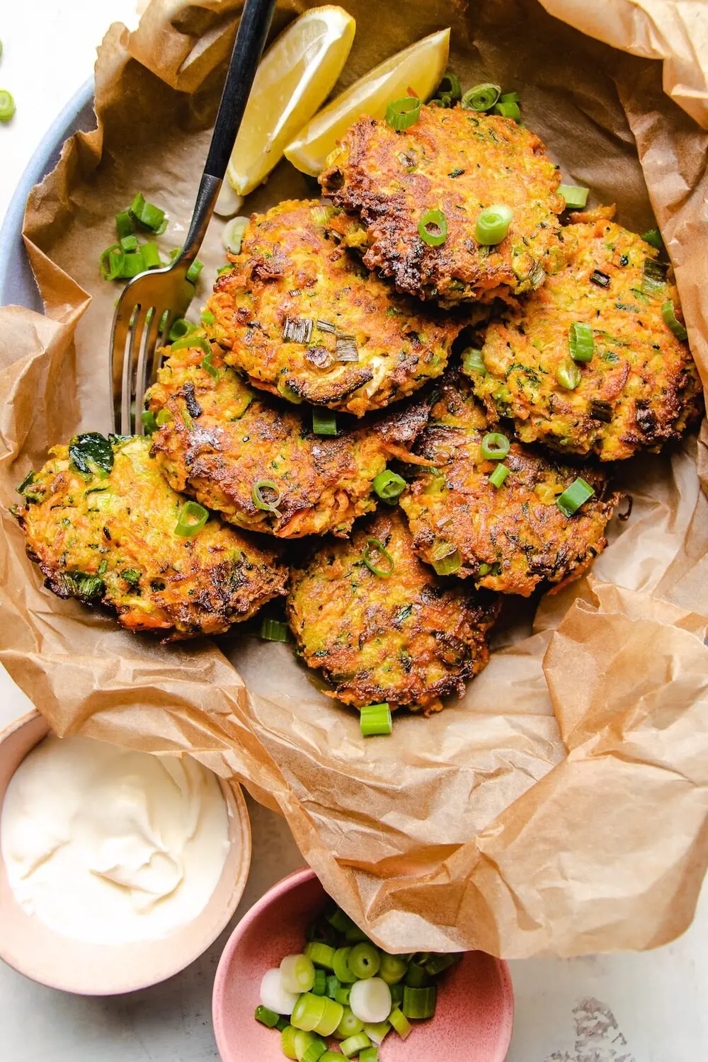 You can customize your fritters by adding herbs, spices, and chesses to make them align with your dinner plan. Serve with a refreshing dip like tzatziki or a zesty salsa.